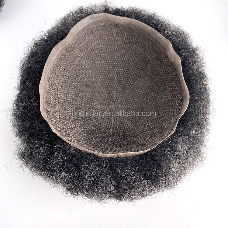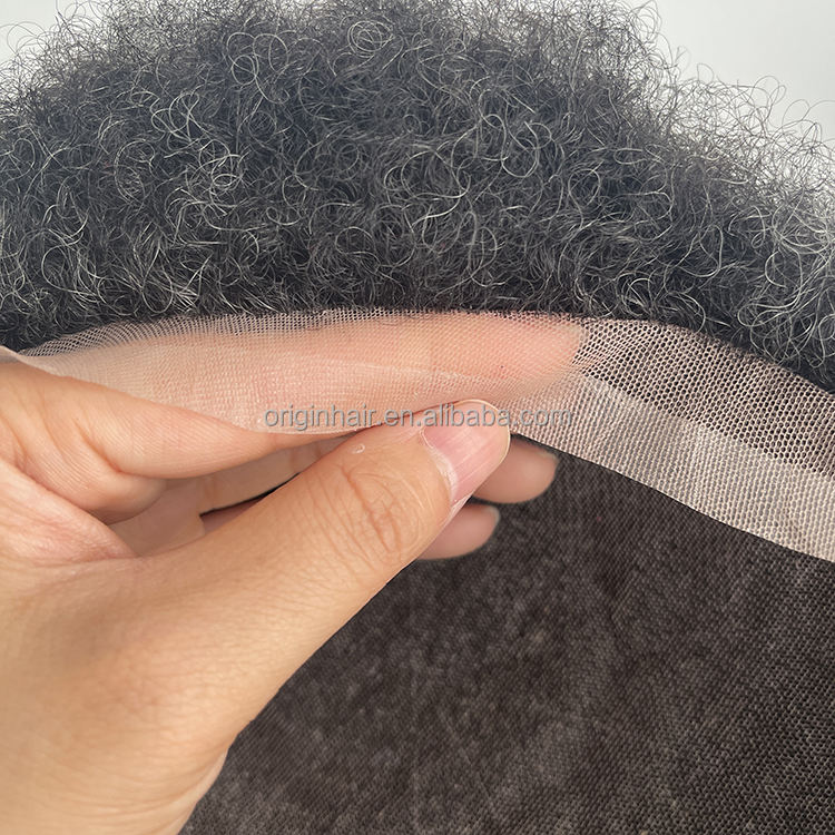 Stock Breathable Lace Base 100% Human Hair Patch Male Wig Hand Tied 4mm Afro Kinky Curl Black 40% Gray Hair Afro Mens Toupee