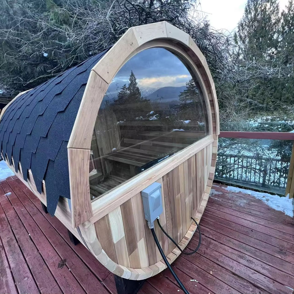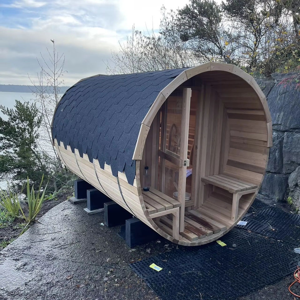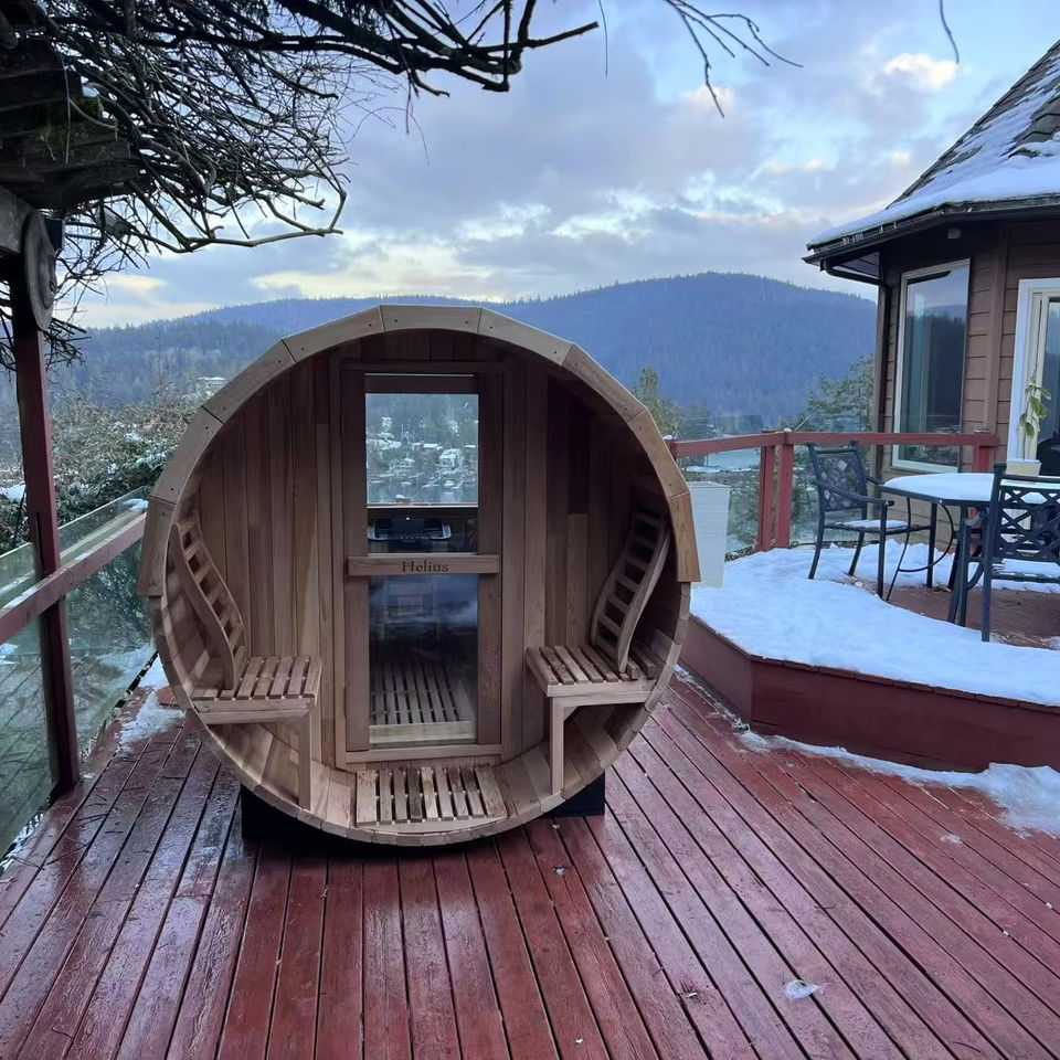 ไม้ซีดาร์ทรงกระบอกสีแดงครึ่งแก้วสำหรับห้องซาวน่าและห้องอบไอน้ำกลางแจ้ง