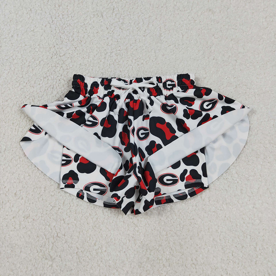 กางเกงขาสั้นมีระบายสำหรับเด็กผู้หญิงผ้าคอตตอนออร์แกนิคผ้านุ่มพิมพ์ลายเสือดาวสำหรับใส่เล่นโยคะฤดูร้อน