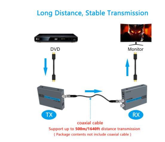 สินค้าขายดี ตัวขยายสัญญาณ HDMI ผ่านสายโคแอกเชียล RG6/7/11 เดี่ยว ตัวส่งและตัวรับสัญญาณ HDMI รองรับความละเอียด 1080P ระยะไกลสูงสุด 500 เมตร/1640 ฟุต มีสินค้าพร้อมส่งจำนวนมาก