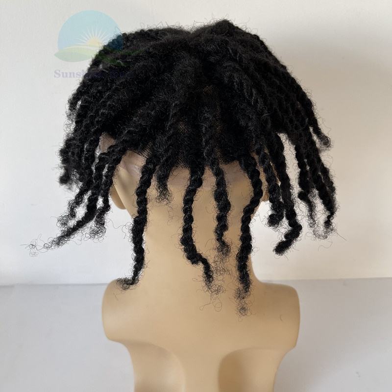 ผมปลอมถักเปียแบบไม่มีปม 100% ผมแท้สำหรับผู้ชาย ท็อปเปอร์ผมอินเดียแบบเรมี่ ทรงแอฟโฟร คินกี้ ทวิสต์ ฐานลูกไม้โปร่งใส ไม่หลุดร่วง