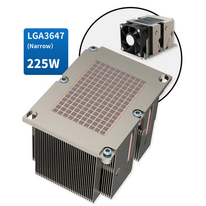 Stock LGA3647 2U R83 Active CPU Cooler with Copper Base Aluminum Fins and 4 Heat Pipes 225W TDP 12V 4Pin PWM Heat Sink for PC
