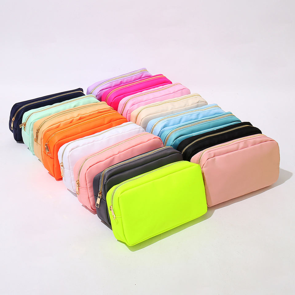 กระเป๋าเครื่องสำอางไนลอนขนาดใหญ่หลากสี ไม่มีขั้นต่ำในการสั่งซื้อ พร้อมซิป สำหรับจัดเก็บอุปกรณ์อาบน้ำ เหมาะสำหรับผู้หญิงและเด็กผู้หญิง ใช้เป็นของขวัญ กระเป๋าใส่เครื่องสำอาง