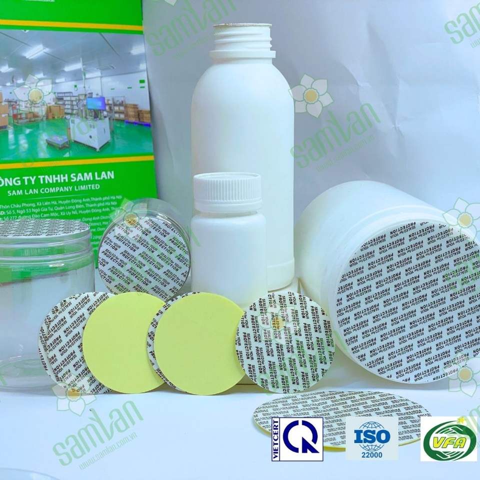 ขวดแก้ว PE พร้อมฝาเกลียวขนาด 36 45 64 70 มม. ปิดผนึกกันรั่วซึม พร้อมแผ่นโฟมปิดผนึกแบบใช้แล้วทิ้ง เกรดสำหรับอาหาร