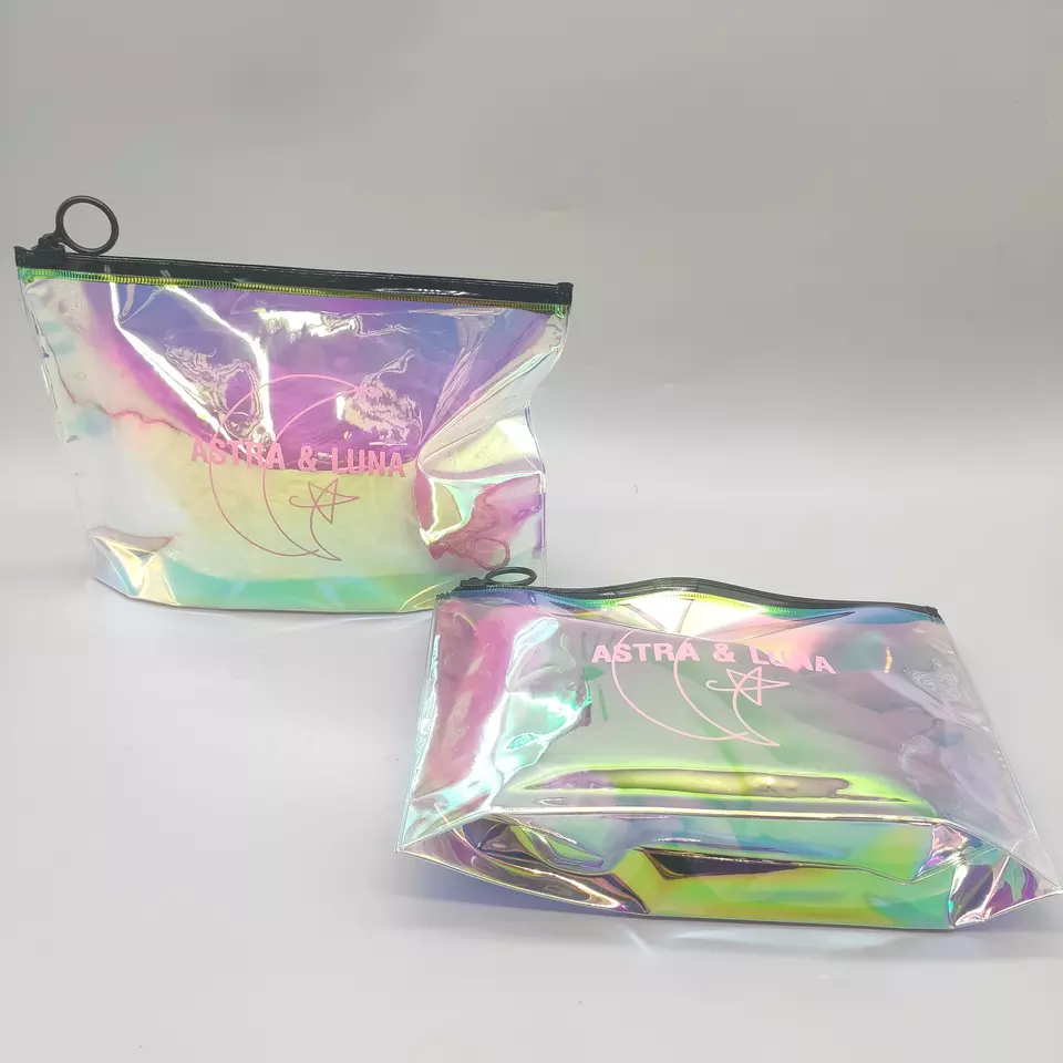 ถุงซิปพีวีซีพิมพ์ลายสีรุ้งแบบใช้ซ้ำได้ กันน้ำ สำหรับใส่เครื่องสำอาง ปากกา ผลิตจากโรงงานเจ้อเจียง