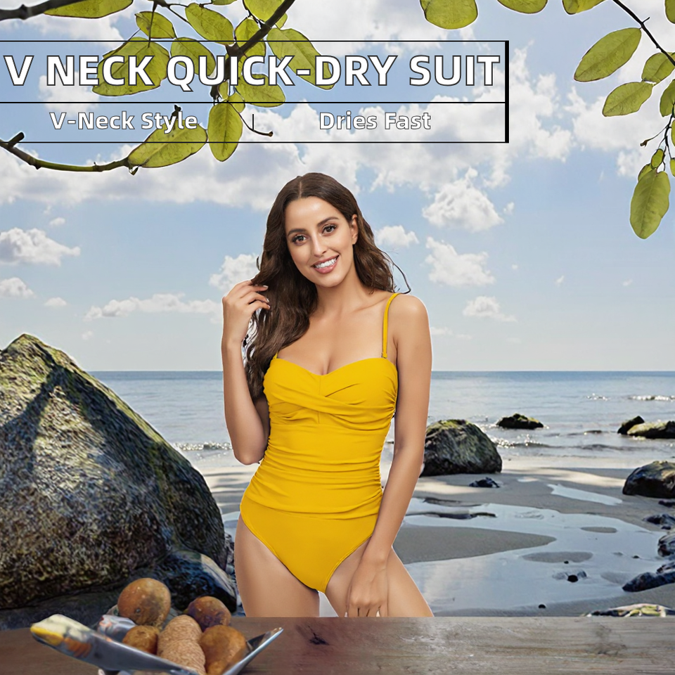 ชุดว่ายน้ำวันพีซผู้หญิง คอวี แบรนด์ Stock Solid พร้อมโลโก้ด้านหน้า ดีไซน์เซ็กซี่ เนื้อผ้าทนทาน แห้งเร็ว เหมาะสำหรับเล่นน้ำทะเลและเล่นเซิร์ฟ
