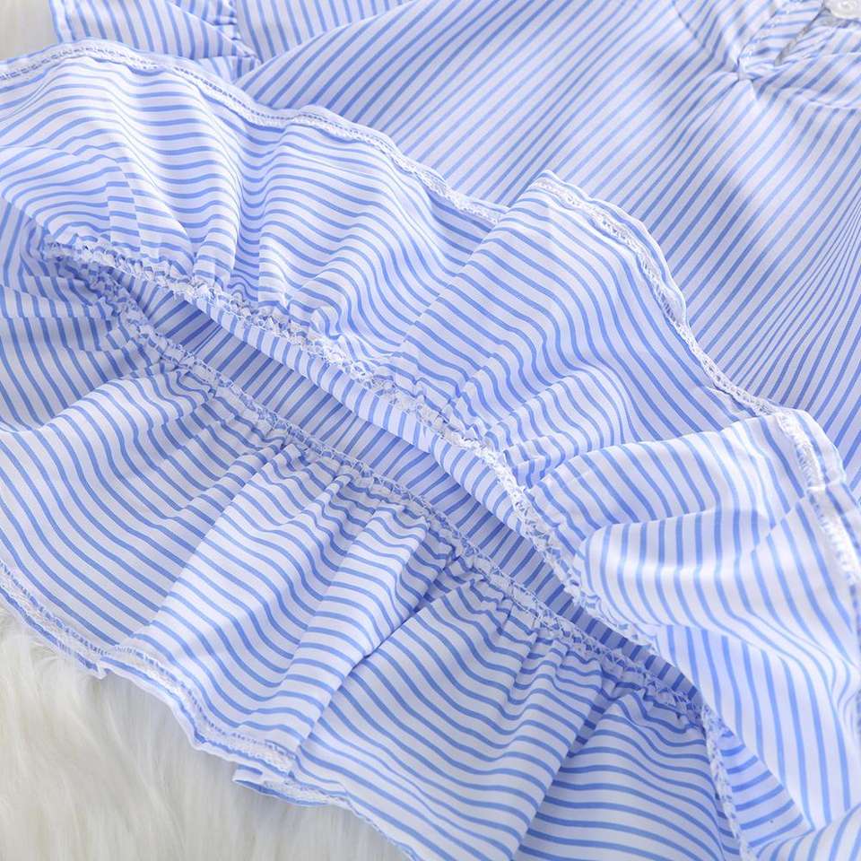 ชุดเสื้อผ้าเด็กผู้หญิง 2 ชิ้น ลายทาง แต่งระบาย เสื้อแจ็คเก็ต กางเกงยีนส์ขาดๆ สำหรับฤดูร้อนและฤดูใบไม้ร่วง