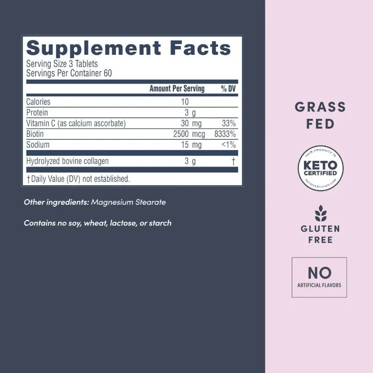 คอลลาเจนแท็บเล็ตไฮโดรไลซ์คอลลาเจนสูตรสำหรับผิวกระชับมีความยืดหยุ่นร่วมกันผมเล็บแข็งแรงอ่อนเยาว์