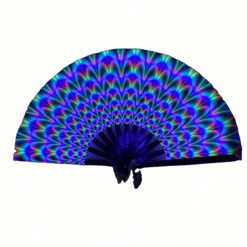พัดผ้าพับได้ขนาดใหญ่ 33 ซม. ด้ามไม้ไผ่เคลือบยูวีสีดำ พร้อมพิมพ์โลโก้ตามสั่ง