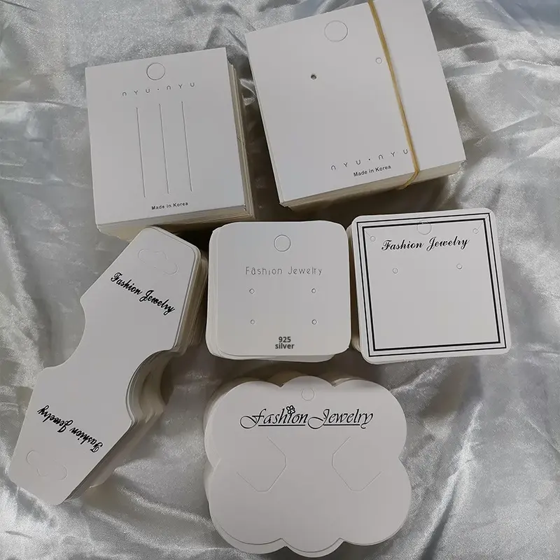 การ์ดกระดาษสีขาวขนาด 8*8 นิ้ว สำหรับต่างหู ขายส่ง พร้อมบริการพิมพ์ลายการ์ดสำหรับเครื่องประดับผม เช่น ยางรัดผม กิ๊บติดผม
