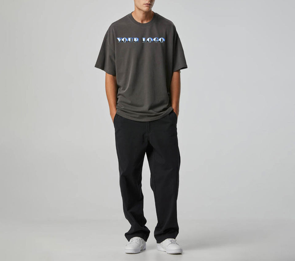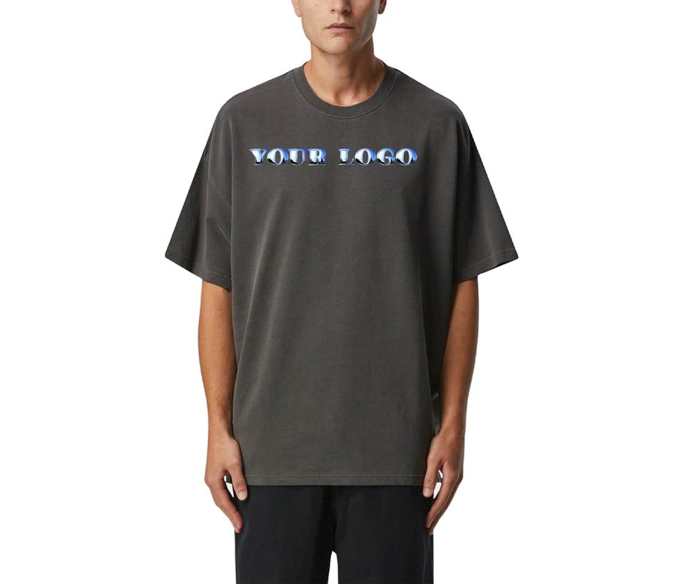 เสื้อยืดสำหรับผู้ชายผ้าคอตตอนออร์แกนิค100% โอเวอร์ไซส์พิมพ์ลายโลโก้ตามสั่ง