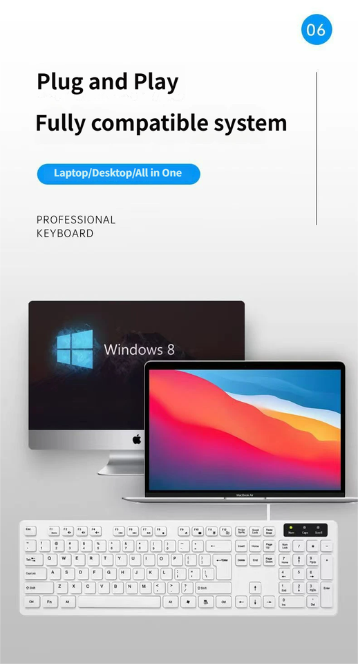 คีย์บอร์ดแบบมีสาย ภาษาอังกฤษและภาษาฝรั่งเศส สำหรับคอมพิวเตอร์ คีย์บอร์ดแบบ Low Profile ปุ่ม Chiclet เชื่อมต่อผ่าน USB