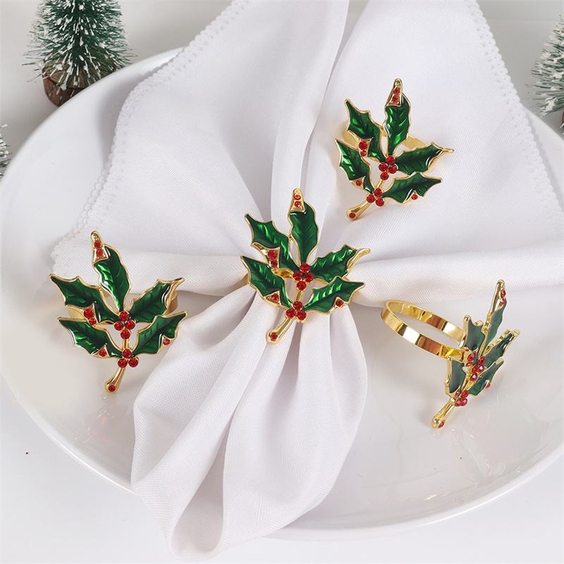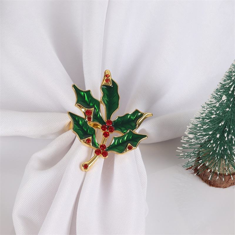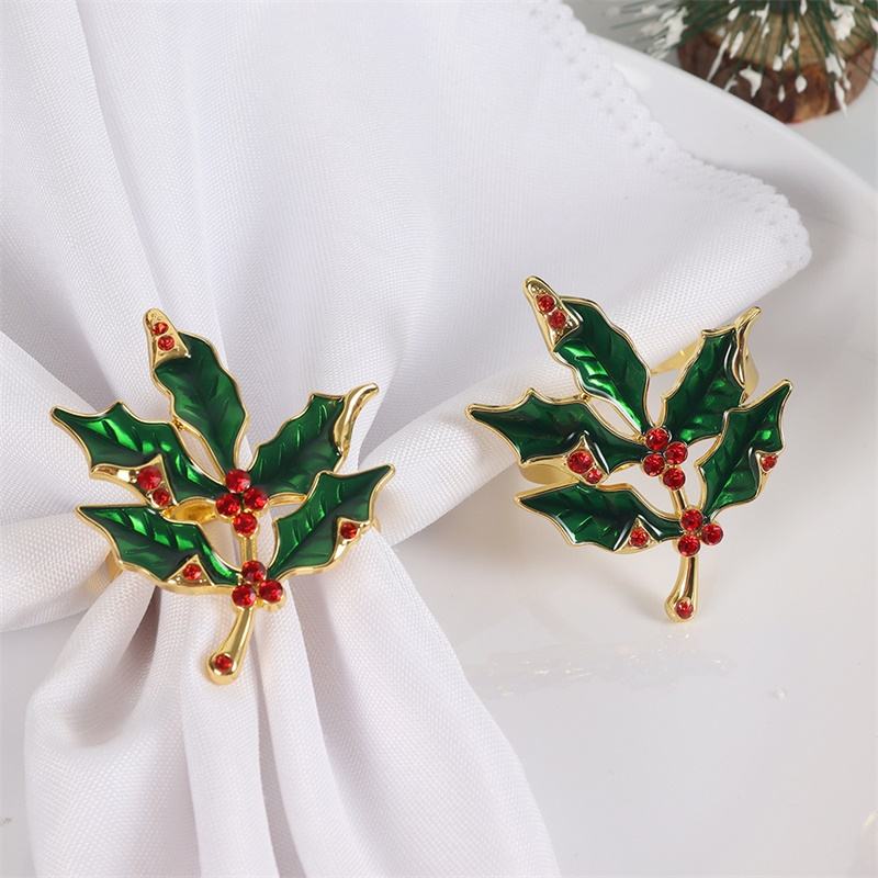 แหวนผ้าเช็ดปากทำจากโลหะผสมพร้อมใบสีทองประดับเพชรสำหรับงานแต่งงานงานเลี้ยงตกแต่งร้านอาหาร