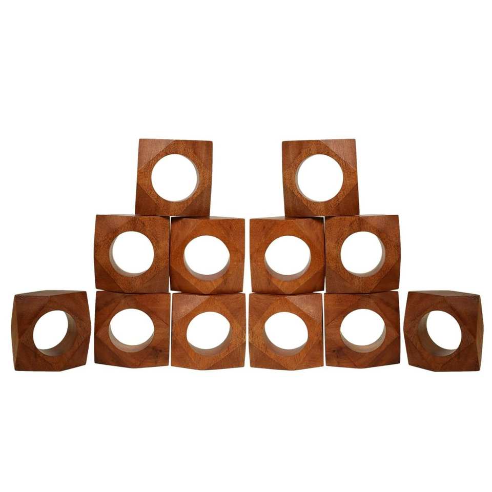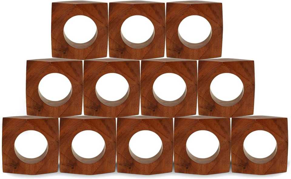 ชุดแหวนผ้าเช็ดปากไม้วินเทจ12ชิ้นพร้อมที่ใส่ผ้าเช็ดปากไม้ไผ่สำหรับงานแต่งงานและของตกแต่งโต๊ะอาหารค่ำ