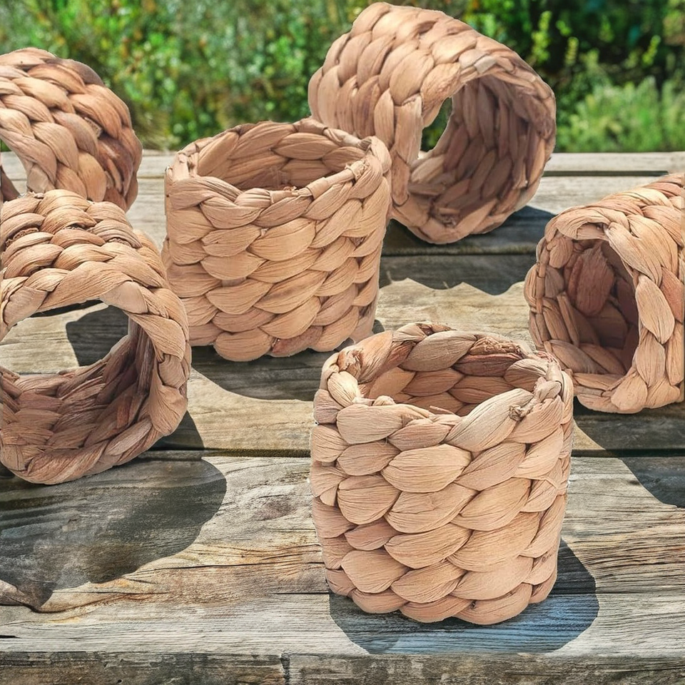 แหวนกระดาษเช็ดปากผักตบชวาแบบมีห่วงทำจากฟางสินค้าสำหรับตกแต่งโต๊ะ
