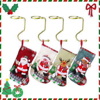 ที่แขวนเครื่องประดับสีทองรูปถุงเท้ายาวอุปกรณ์ตกแต่งคริสต์มาสแบบแขวนอุปกรณ์ตกแต่งตามเทศกาล