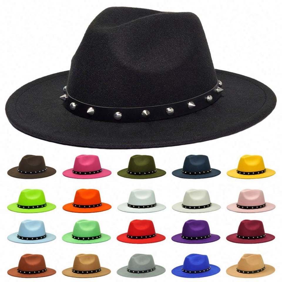 หมวกสักหลาดแฟชั่นสไตล์วินเทจสำหรับทุกเพศ แต่งริบบิ้น ปีกกว้าง ทรงปานามา คาวบอย เฟโดรา เหมาะสำหรับงานปาร์ตี้ ปรับแต่งได้