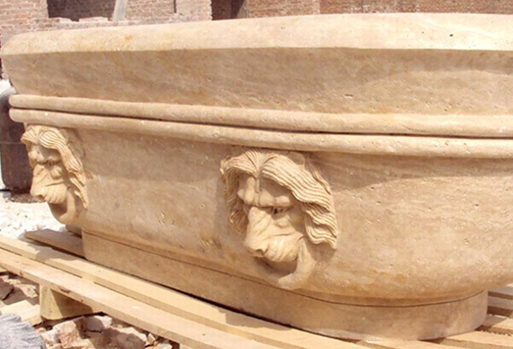 อ่างอาบน้ำหินแกะสลักยุโรปสไตล์ธรรมชาติหินอ่อนอ่างอาบน้ำ Lion หัวรูปแบบดอกไม้