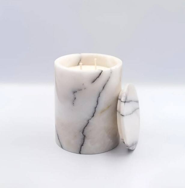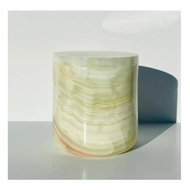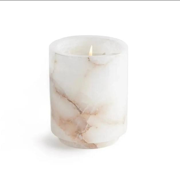 เชิงเทียนหินอลาบาสเตอร์ทรงกระบอกทำด้วยมือของตกแต่งบ้าน offiec เชิงเทียนหินขาว