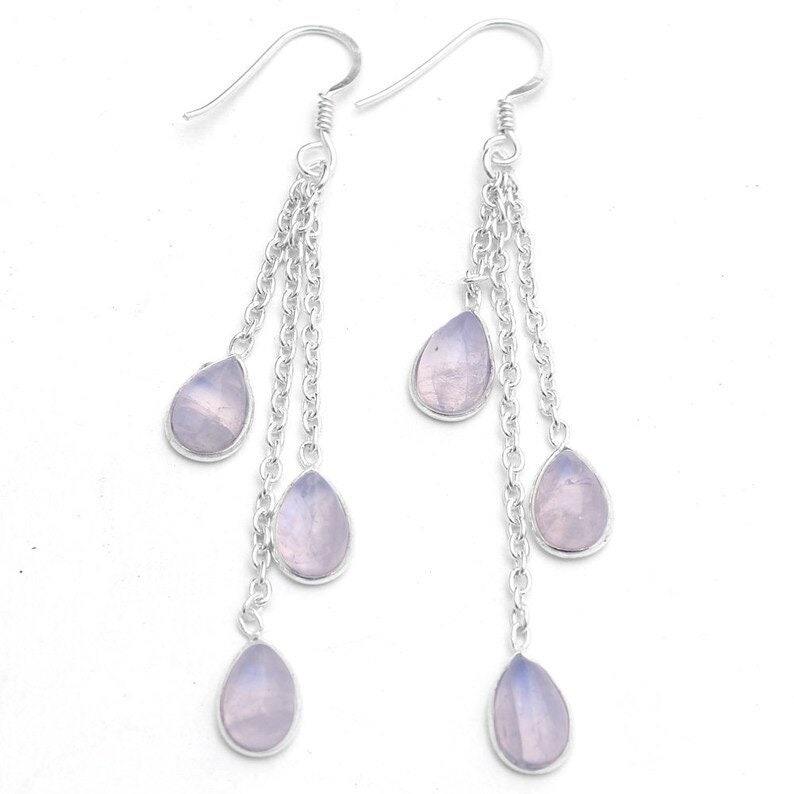 ต่างหูห้อยพลอยมูนสโตนสีฟ้า สำหรับผู้หญิง เงินแท้ 925 เครื่องประดับงานแต่งงาน ดีไซน์ทันสมัย