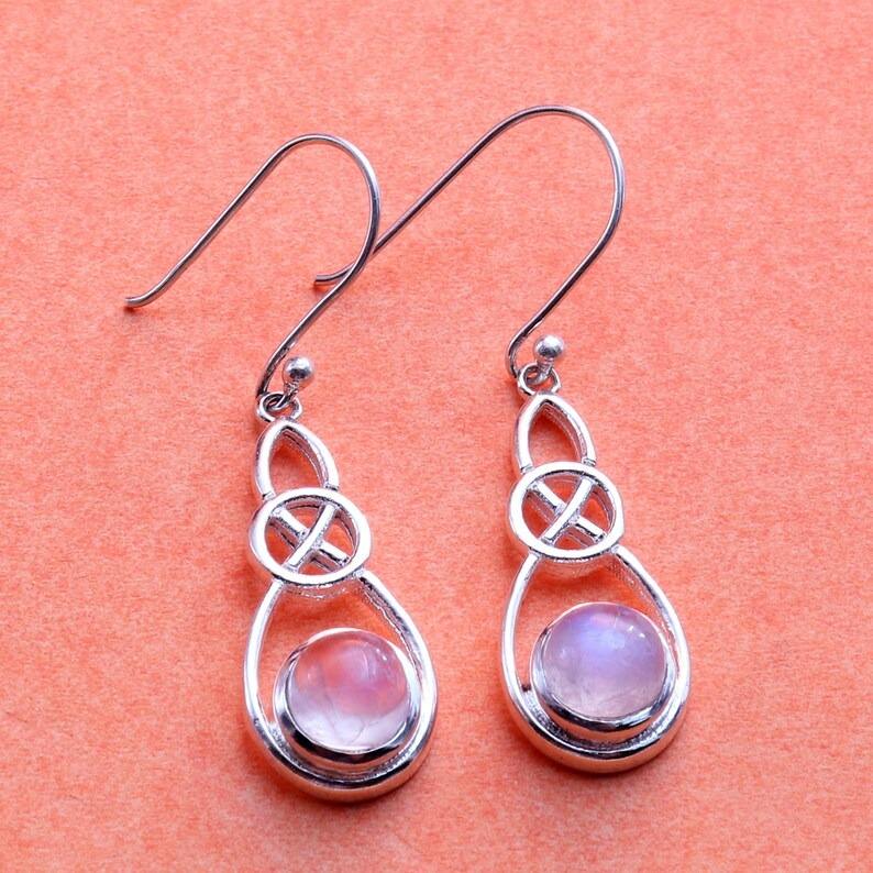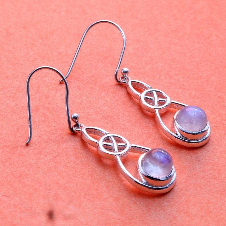 ต่างหูหินสำหรับสาวๆต่างหูพลอยมูนสโตนไฟสีน้ำเงิน925ต่างหูเงินแท้ต่างหูระย้า