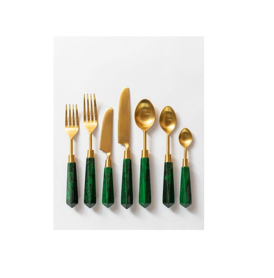ชุดเครื่องใช้บนโต๊ะอาหารด้ามหินตกแต่งด้วยลวดลายหลากหลายขนาดและรูปทรง