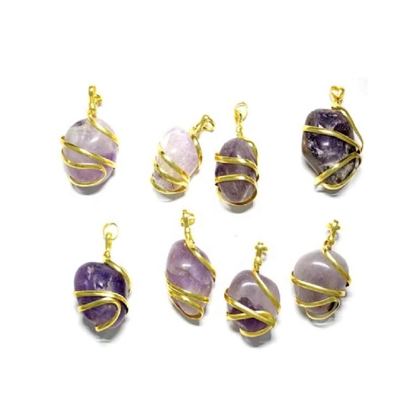 จี้หินอเมทิสต์ กรวดจี้บําบัด หินร่วงลง จี้คริสตัลร่วงลง อัญมณีอาเกต สร้อยคอผู้ค้าส่ง