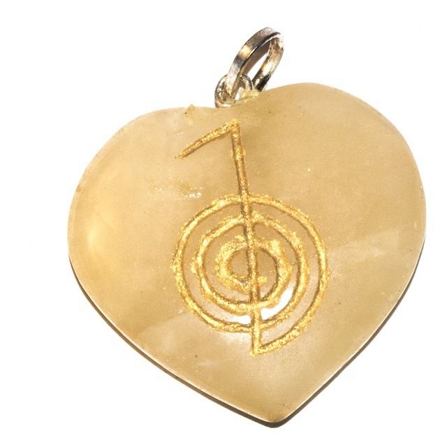 จี้หิน จี้รูปหัวใจผจญภัยสีเหลือง พร้อมสลักสัญลักษณ์โชคูเรย์ ผู้ค้าส่งจี้หินธรรมชาติ