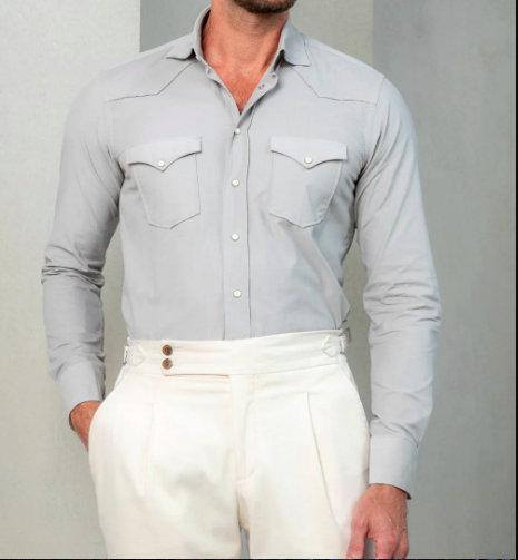 เสื้อสแน็ปแขนยาวมีกระเป๋าสองกระเป๋าสไตล์ตะวันตกเสื้อกีฬาผู้ชาย