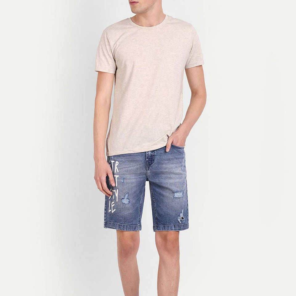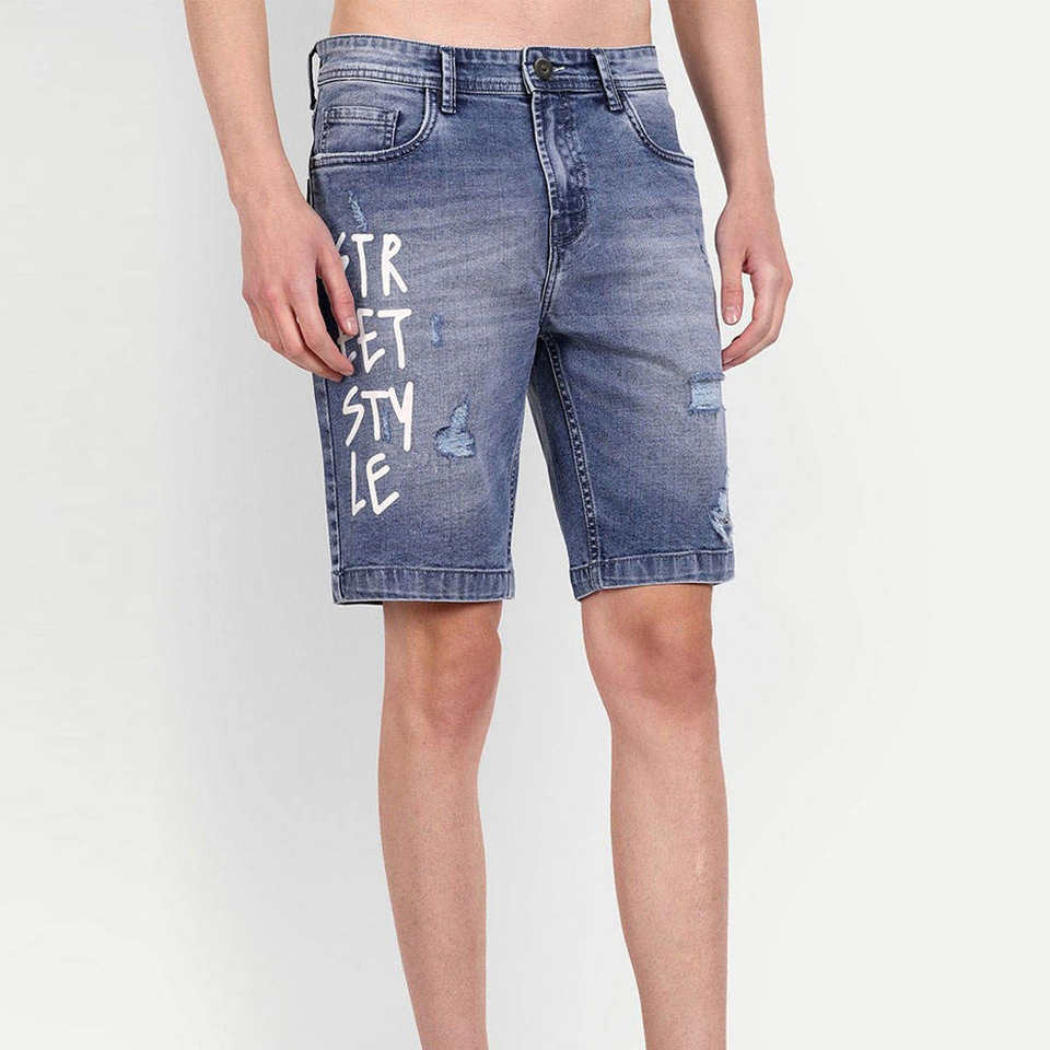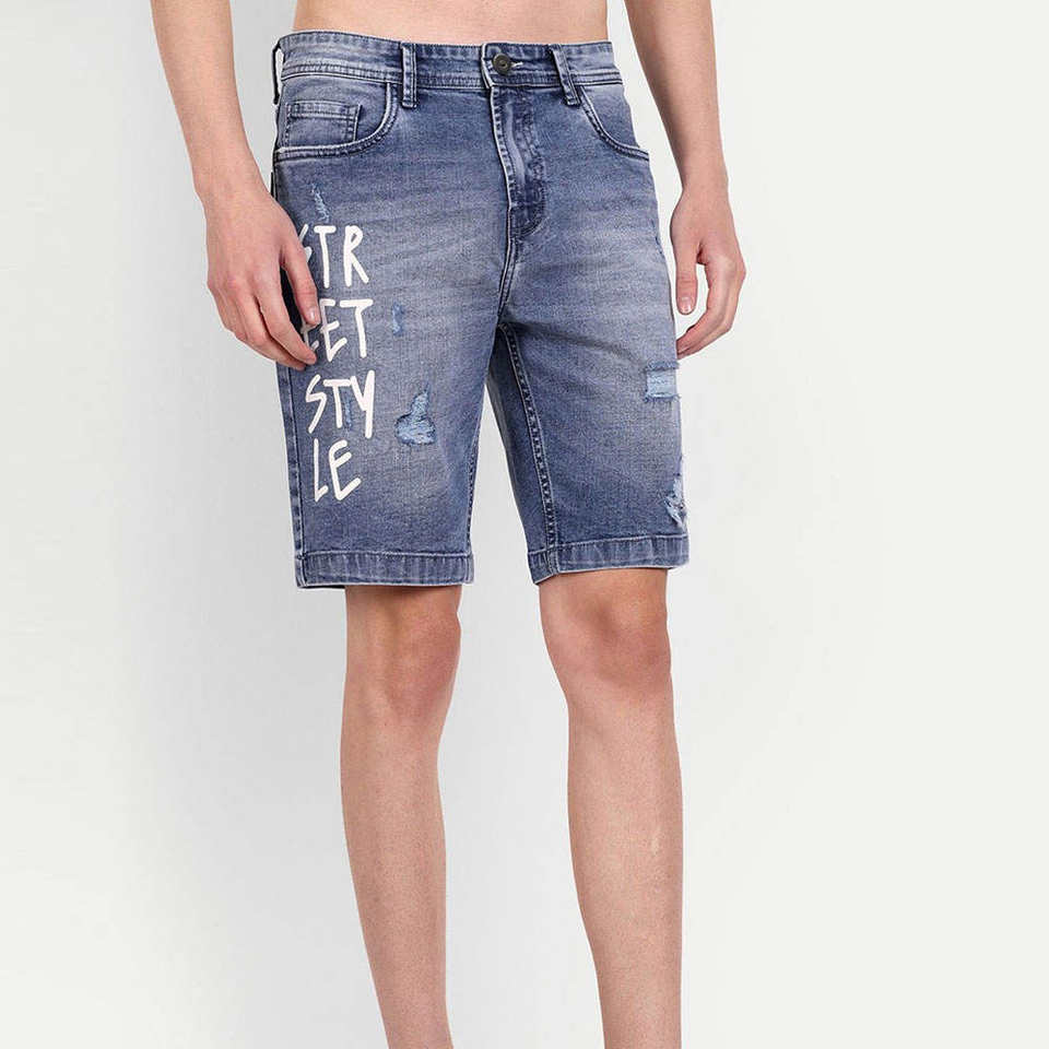 Stone Wash Men's Denim Shorts Grey Fashion Jean Shorts Relaxed Fit Distressed Summer Denim Trousers Wholesale Price