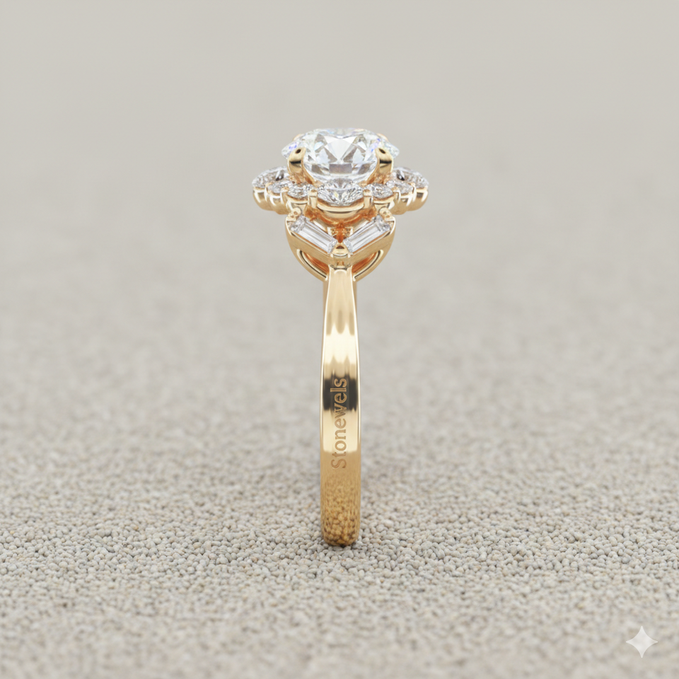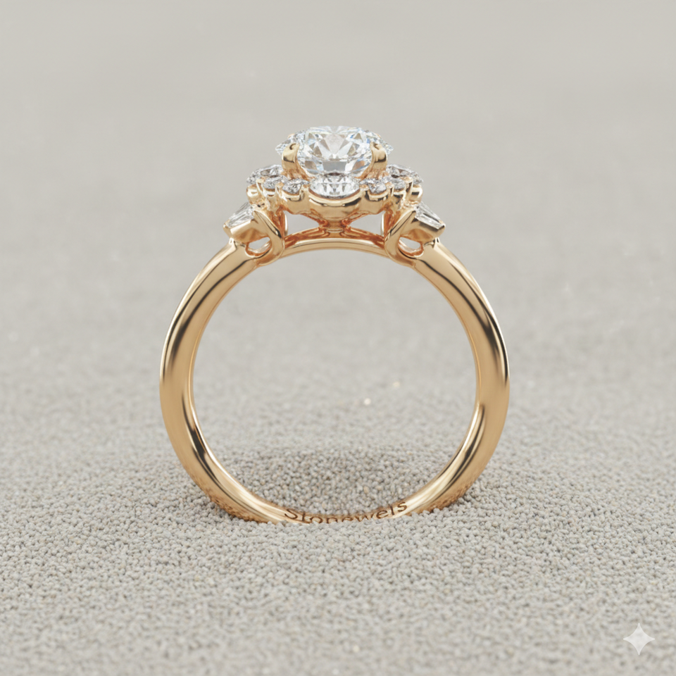 แหวนหมั้นสไตล์วินเทจ Stonewels Glamour Halo ประดับเพชรแบบฝังหนามเตย สำหรับทองคำแท้ที่ได้รับการรับรอง