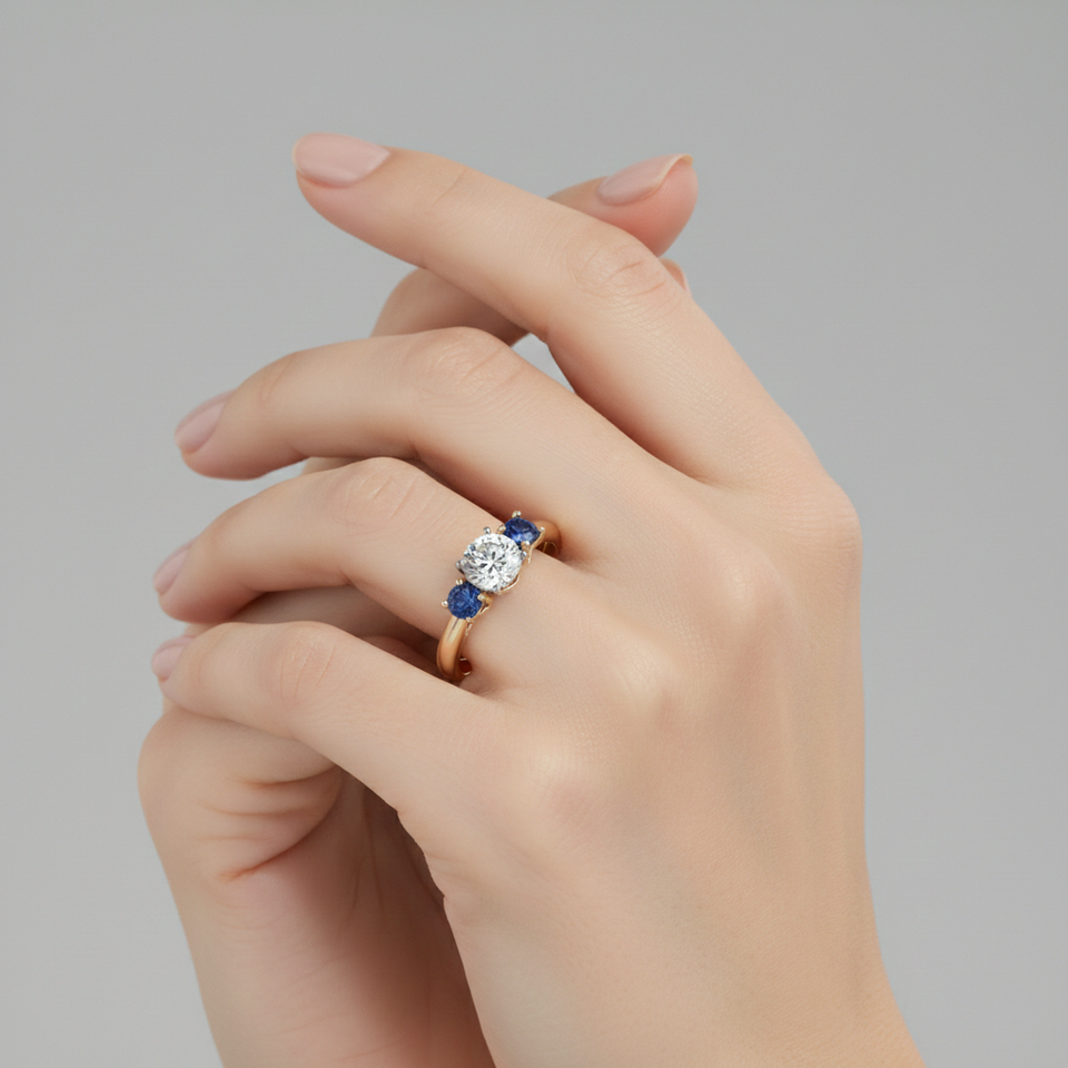 หมายเลขรุ่น:Round Blue Sapphire Three Stone Ring