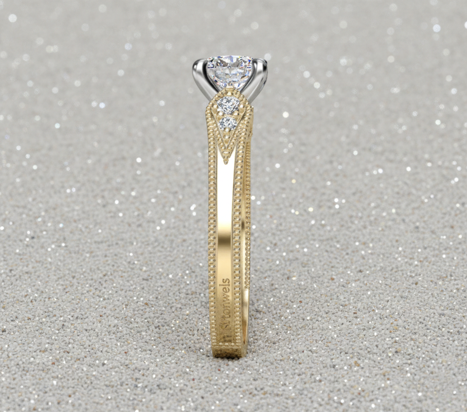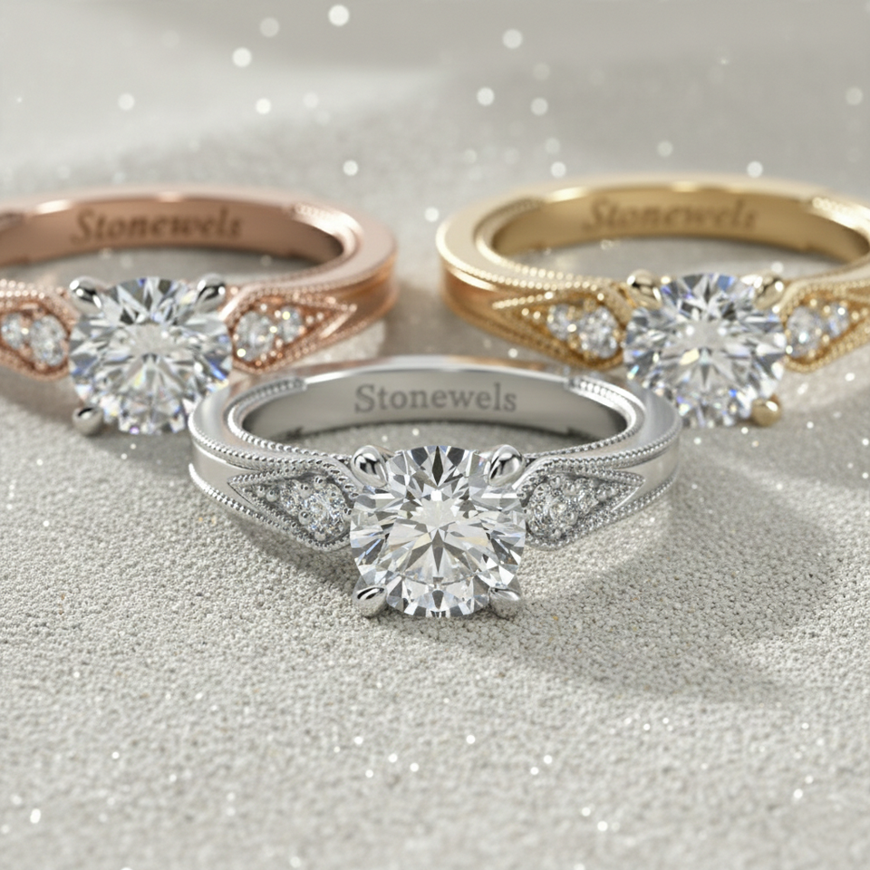 แหวนหมั้นเพชรสร้างในห้องปฏิบัติการ Stonewels ดีไซน์วินเทจลายเพสลีย์ ประดับเพชรด้านข้างแบบ Prong Set สำหรับแหวนทองคำแท้สำหรับเจ้าสาว