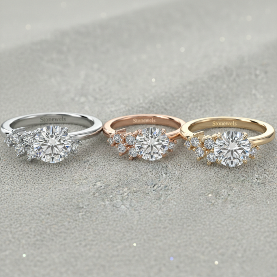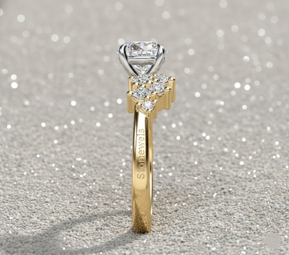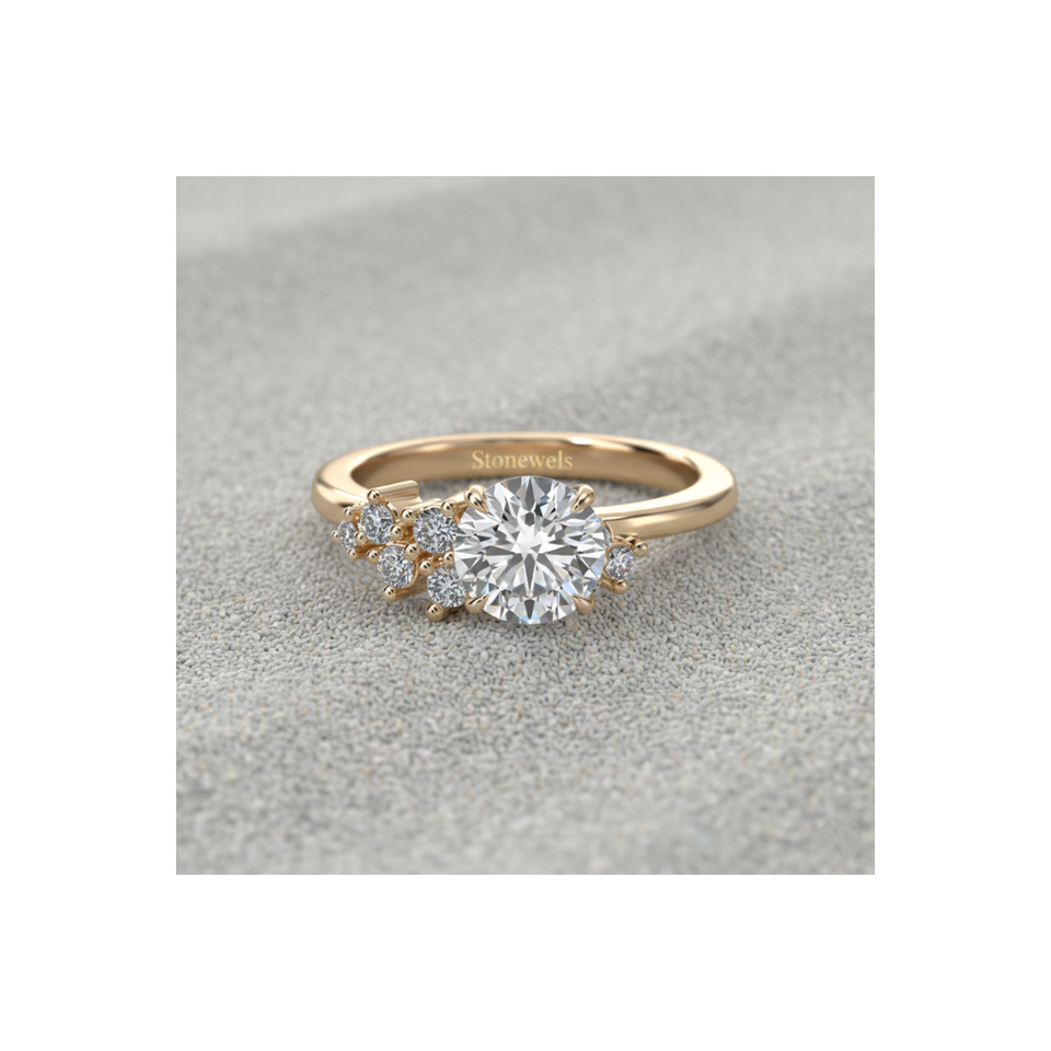 แหวนหมั้นเพชรสร้างในห้องปฏิบัติการ Stonewels ทรงคลัสเตอร์ประดับเพชรด้านข้าง ตัวเรือนทอง 14K แบบหนามเตย สำหรับแหวนเจ้าสาวสุดหรูที่ได้รับการรับรอง