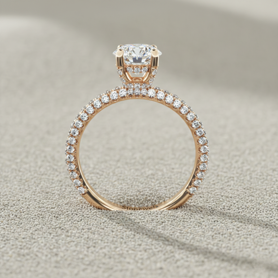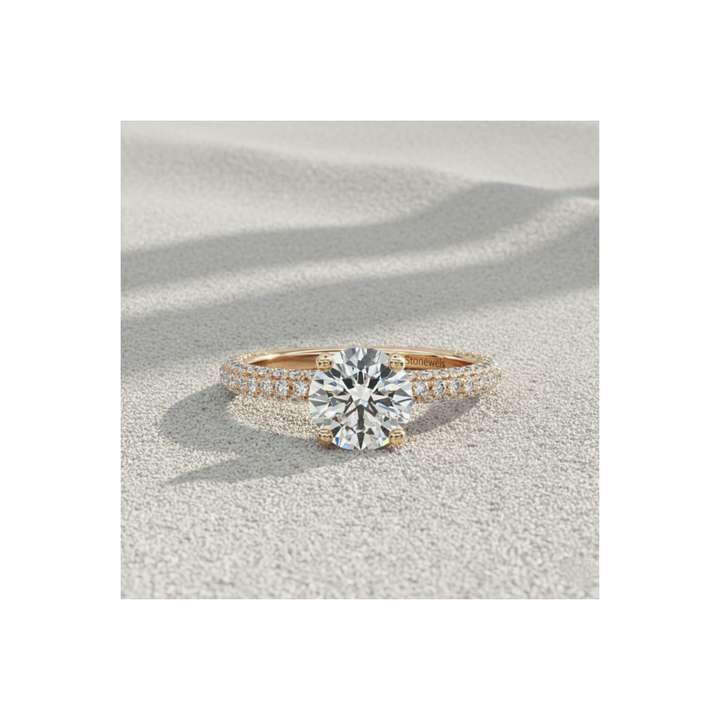 แหวนหมั้นเพชรสร้างในห้องปฏิบัติการ Stonewels ทอง 14K ทรงตัดแบบทรีโอ ประดับเพชรแบบไมโครพาเว่ สำหรับเจ้าสาว ได้รับการรับรอง ดีไซน์เรียบหรู สามารถสั่งทำได้