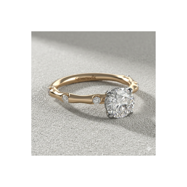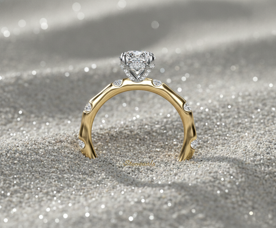 Stonewels Lab Grown Diamond Engagement Ring 14K Gold Cut Hidden Halo Side Stone Prong Set for Certified Custom Jewelry