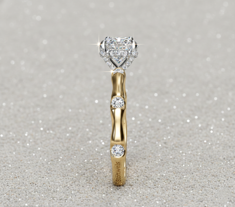 Bamboo Hidden Halo Side Stone Diamond Ring