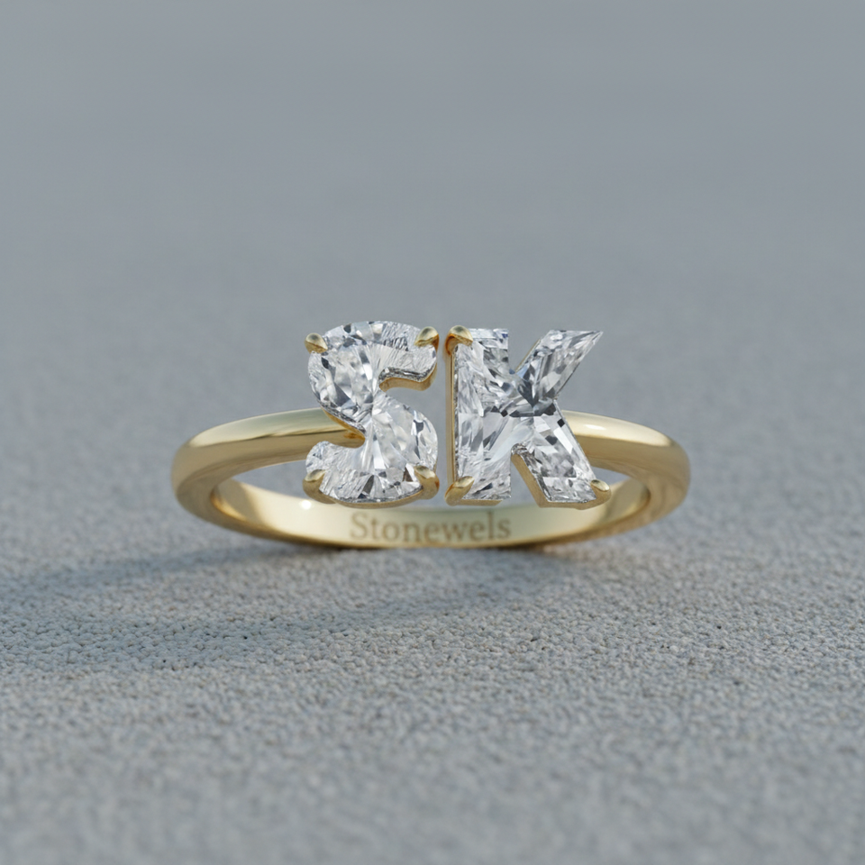 Stonewels แหวนทองคำส่วนบุคคล CVD แลบปลูกเพชร | เครื่องประดับหรูหราตัวอักษรแบบกำหนดเอง | สำหรับชุดแหวนที่ได้รับการรับรอง