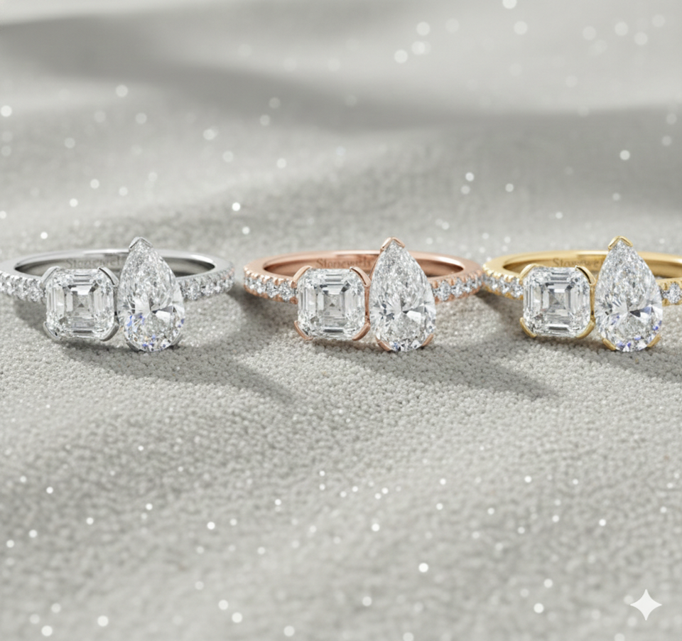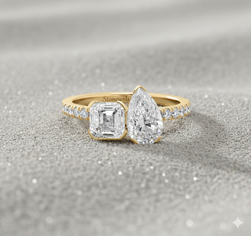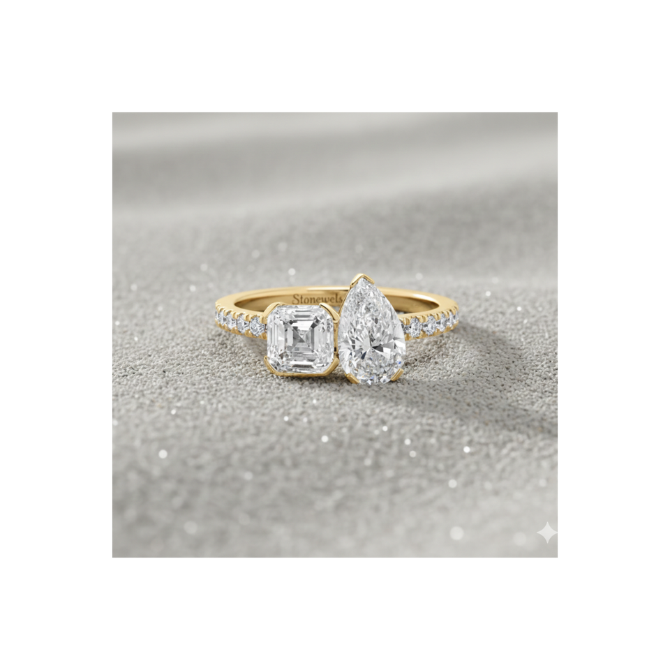 Stonewels Toi et Moi Pav ชุดง่ามเพชรปลูกในห้องปฏิบัติการแหวนทองที่มีการรับรองสำหรับ