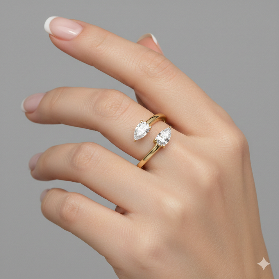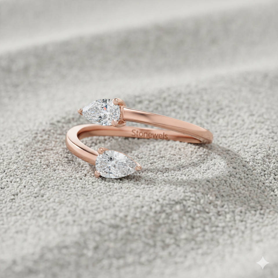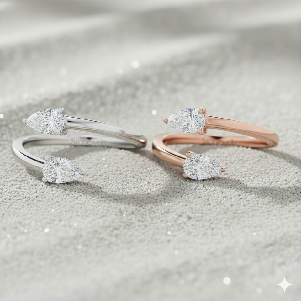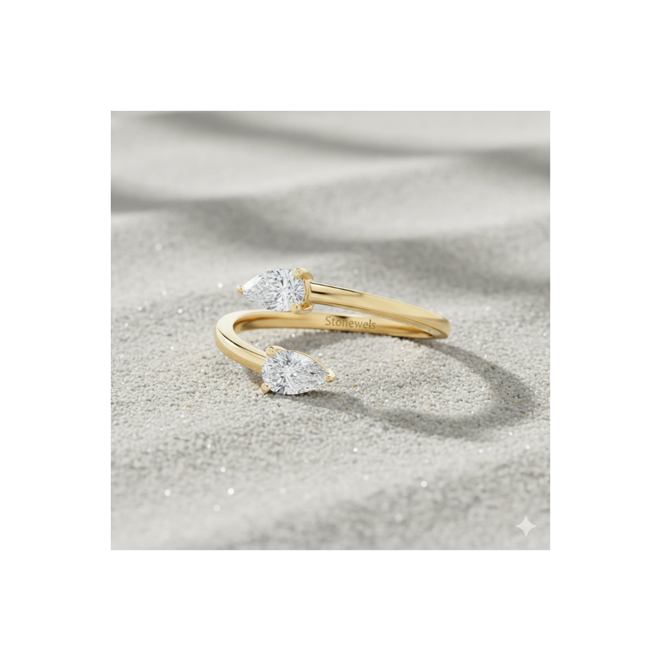 Stonewels Toi et Moi วงแหวนบายพาสเพชรรูปลูกแพร์สำหรับการปลูกในห้องทดลองสีทองพร้อมการตั้งค่าแบบง่ามสำหรับเครื่องประดับหรูหราที่ผ่านการรับรอง