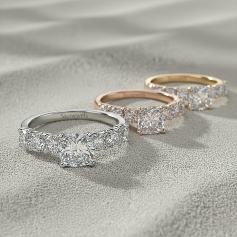 แหวนเพชรประดับด้านข้างทรงคุชชั่น