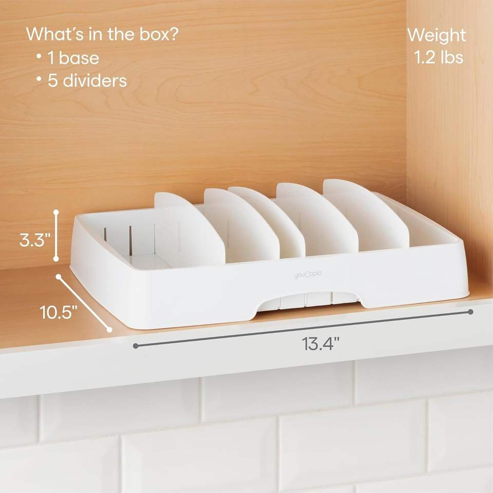กล่องเก็บของในตู้ครัวขนาดใหญ่ StoraLid พร้อมฝาปิดจัดระเบียบอาหาร 5 ช่องปรับได้ ขนาด 10.5 ลึก 13.4 กว้าง 3.3 สูง