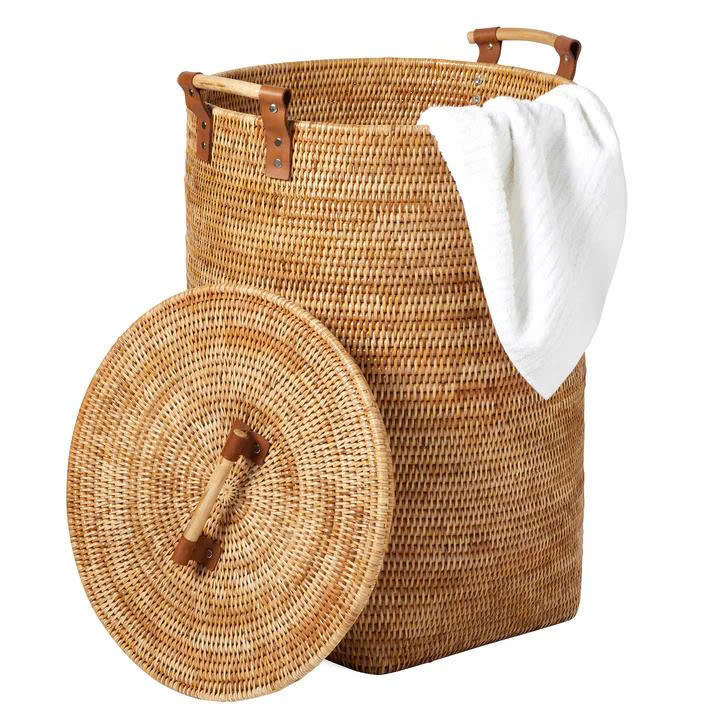 ตะกร้าหวายทรงสูงและที่เก็บของ