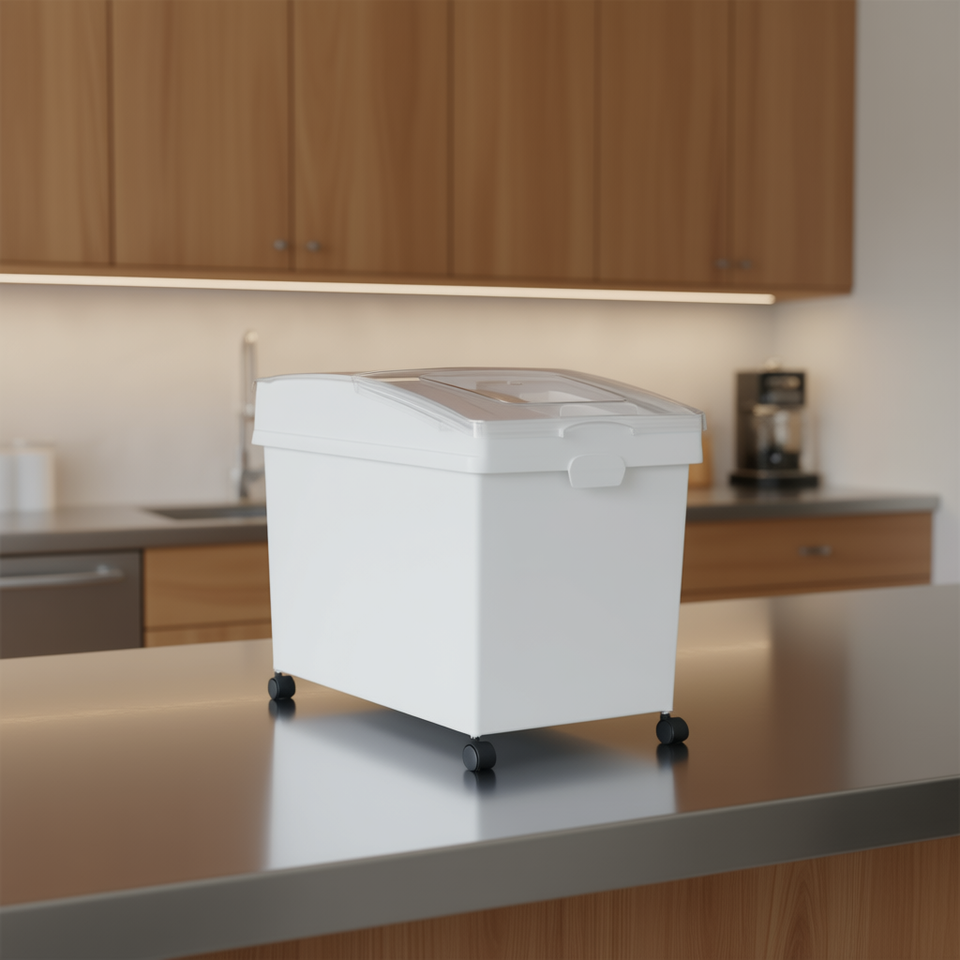 กล่องเก็บของขนาด 10.5 แกลลอน วัสดุ PP ฝาเลื่อนพร้อมล้อ สำหรับเก็บอาหารในครัว