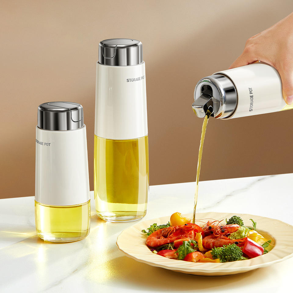 ขวดเก็บของเหลวสำหรับใส่เครื่องปรุงรส ฝาโลหะป้องกันการรั่วซึม เปิดอัตโนมัติ มีฝาปิดแบบมีรู ผลิตที่เจ้อเจียง