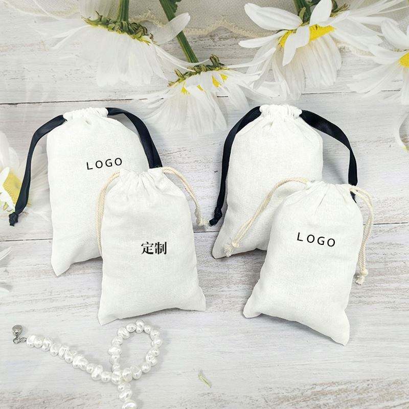 Storage Custom Logo Printed Gift Linen Jewelry Small Dust Drawstring Packaging Pouch Bag