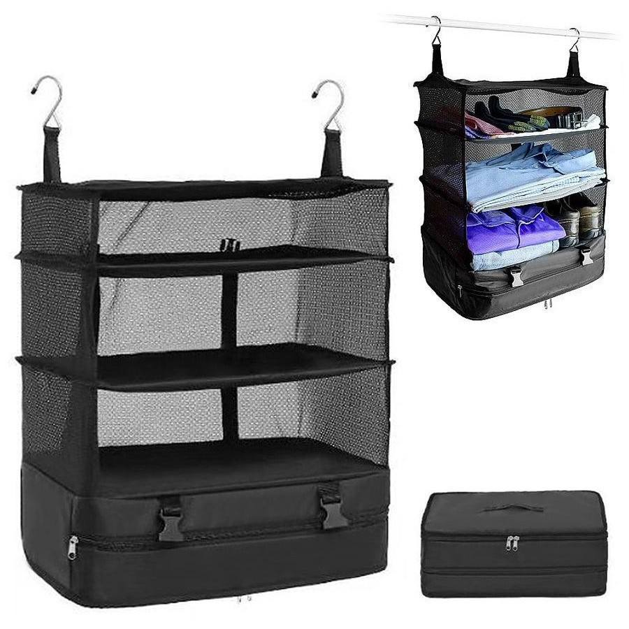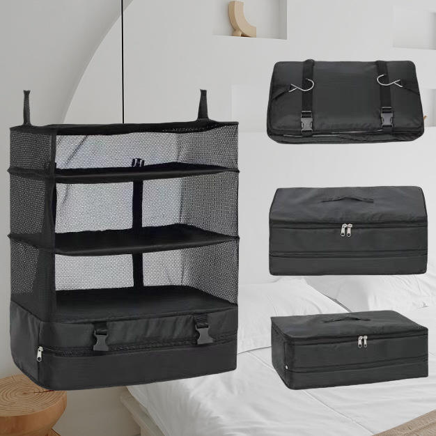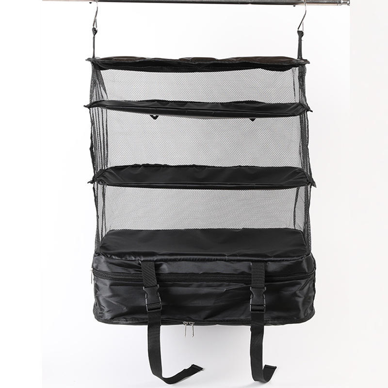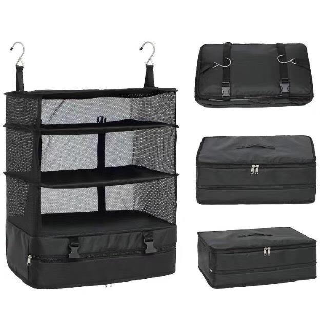 กระเป๋าแขวนเก็บของ 46x30x55 ซม. ตาข่ายสามชั้นสำหรับจัดเก็บของใช้ในบ้าน ท่องเที่ยว พกพาสะดวก ความจุขนาดใหญ่ สีดำ โพลีเอสเตอร์