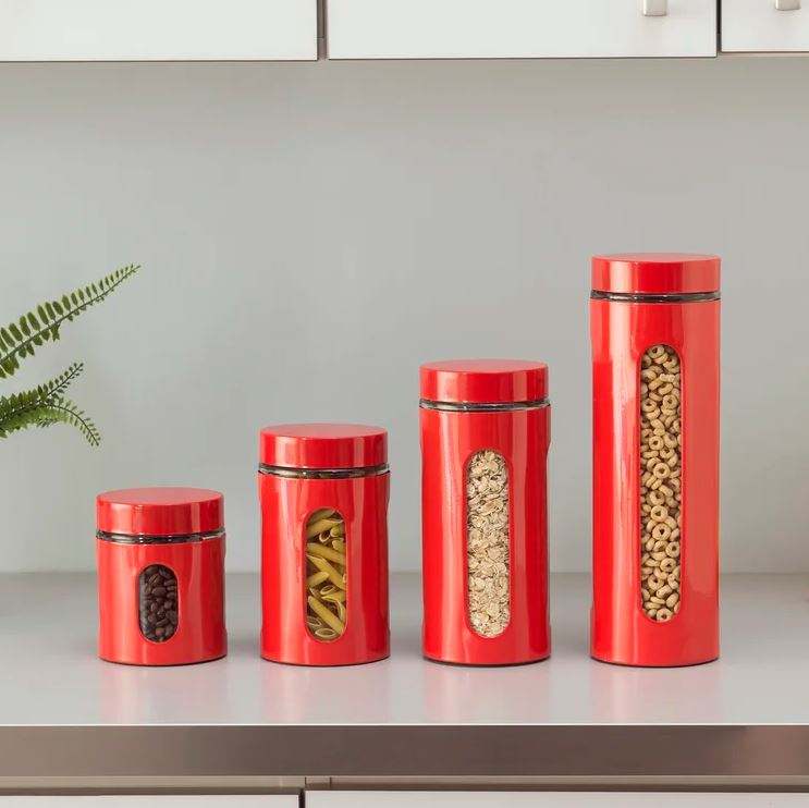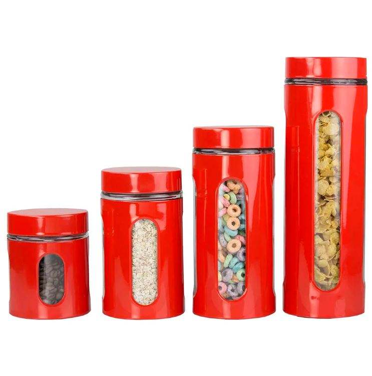 โถเก็บอาหารคุณภาพสูง สีแดง ทำจากโลหะ สำหรับเก็บอาหารแห้ง ผลไม้อบแห้ง ภาชนะเก็บอาหาร ใช้ในบ้าน โรงแรม ร้านอาหาร ตกแต่งห้องครัว