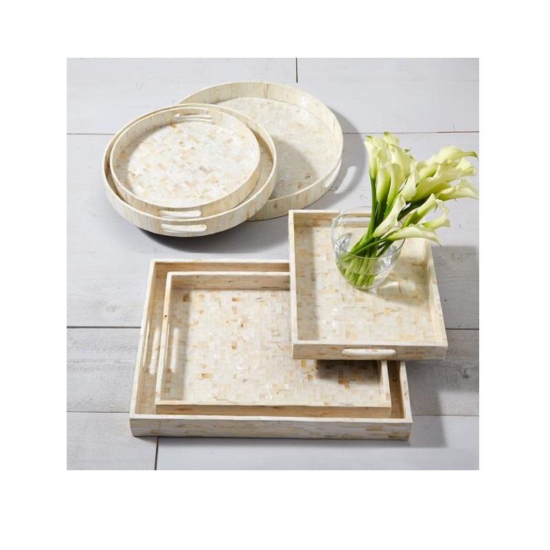 Storage Tray Mother Of Pearl Tray Square And Round Organizer Decorative for Interior Decor