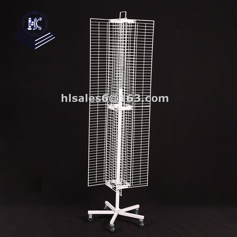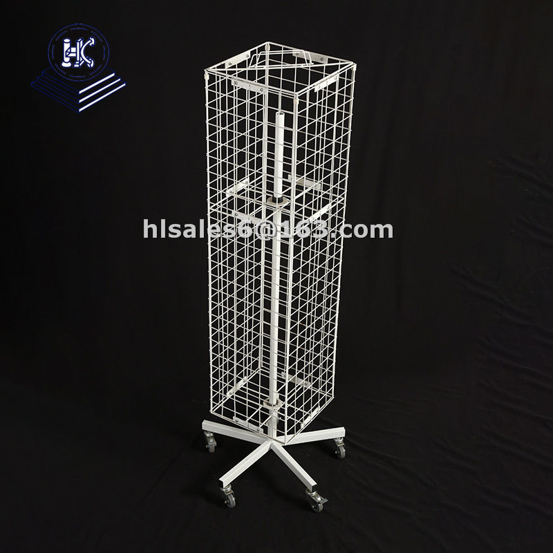 ชั้นวางสินค้าแบบตาข่ายลวด 4 ด้าน หมุนได้ สำหรับวางขนมขบเคี้ยวแบบแขวน พร้อมล้อเลื่อน HL